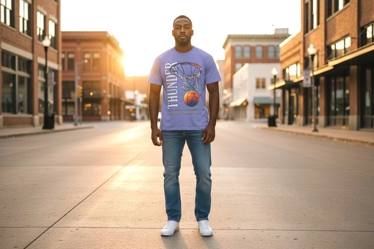 Celebrate the Oklahoma City Thunder playoffs run with our exclusive 'O-K-C' tee shirt set! You and two friends can all suit up as a human-sized poster. It’s a triple threat of team spirit, twinning and total devotion to the hometown.