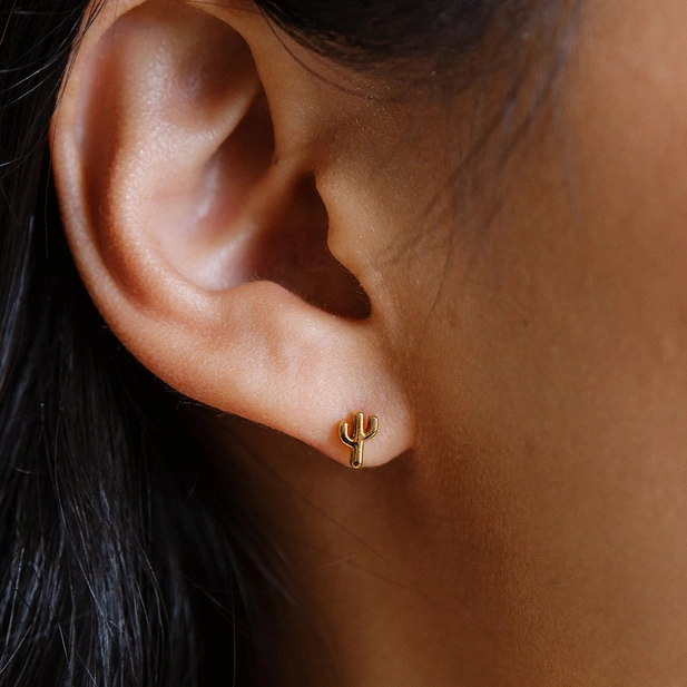 Add a bit of southwestern flair with our adorably tiny cactus stud earrings. They're petite, sweet, comfortable, and perfect for multiple piercings. Measures 5.7mm x 4 mm.